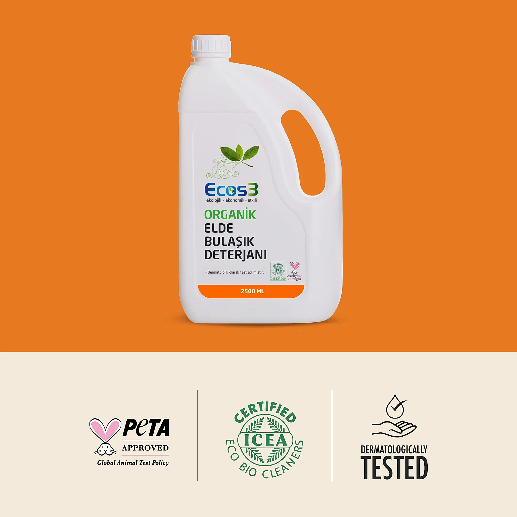 Ecos3 Sertifikalı Organik Elde Bulaşık Deterjanı, elde bulaşık yıkama için geliştirilmiş etkili ve kolay durulanan bir formüle sahiptir. Yağ ve kirlerin çözülmesine yardımcı olarak bulaşıkların temizlenmesini sağlar ve durulama sonrası kalıntı bırakmaz.
