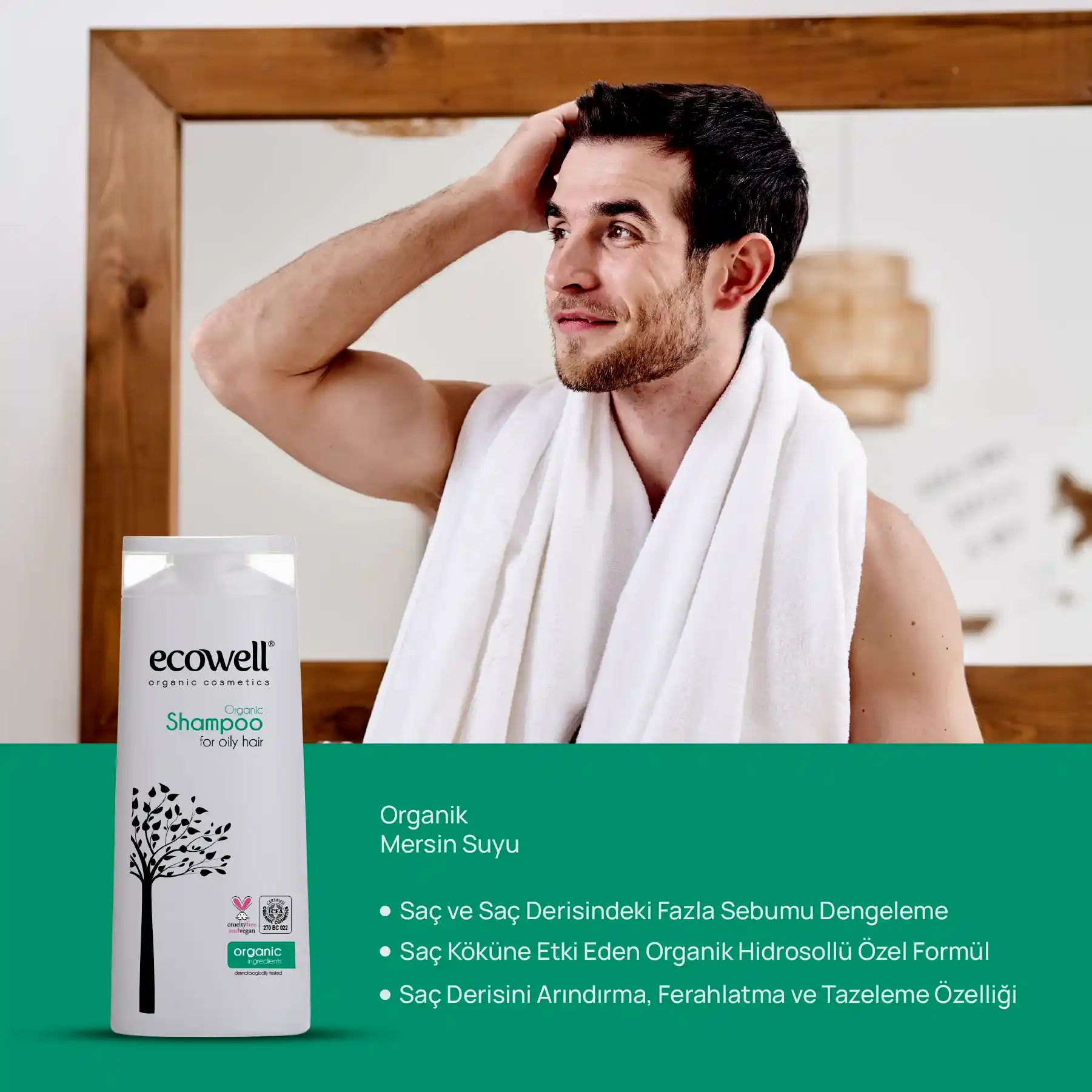 Ecowell Organik Şampuan yağlı saçlar için özel olarak formüle edilmiştir. Saç ve saç derisindeki fazla sebumu dengeler. İçeriğindeki Organik Mersin Suyundan gelen antioksidan içerik cildinizi serbest radikallerden korumaya yardımcıdır. Saç köküne direkt etki yapan organik bitki hidrosolleri içeren özel formüle sahiptir. Saçınızı temizlerken aynı zamanda saç derinizi arındırır, ferahlatır, tazeler. Saçlarınız parlak ve sağlıklı olur. Her saç tipine ve günlük kullanıma uygundur.